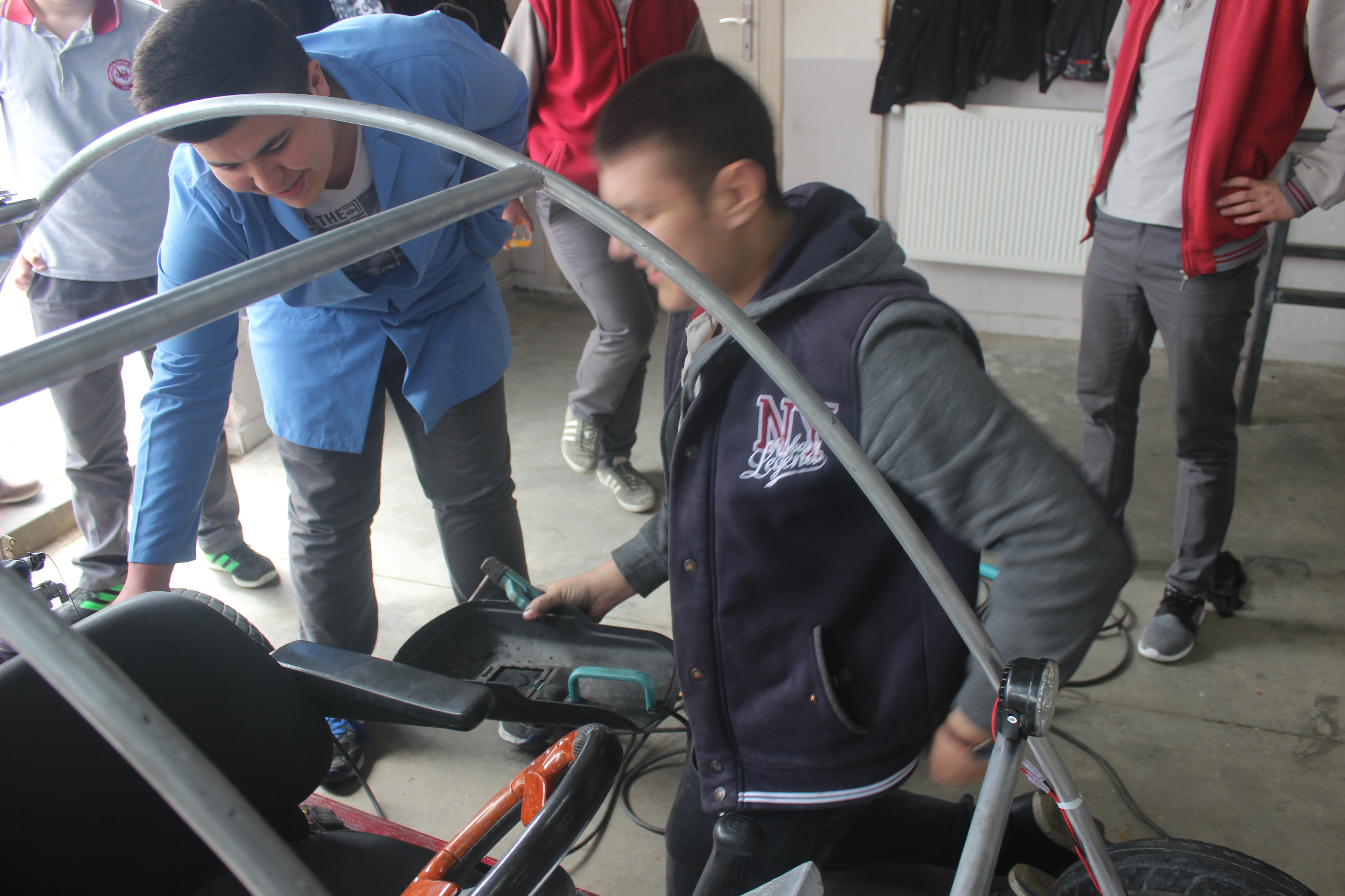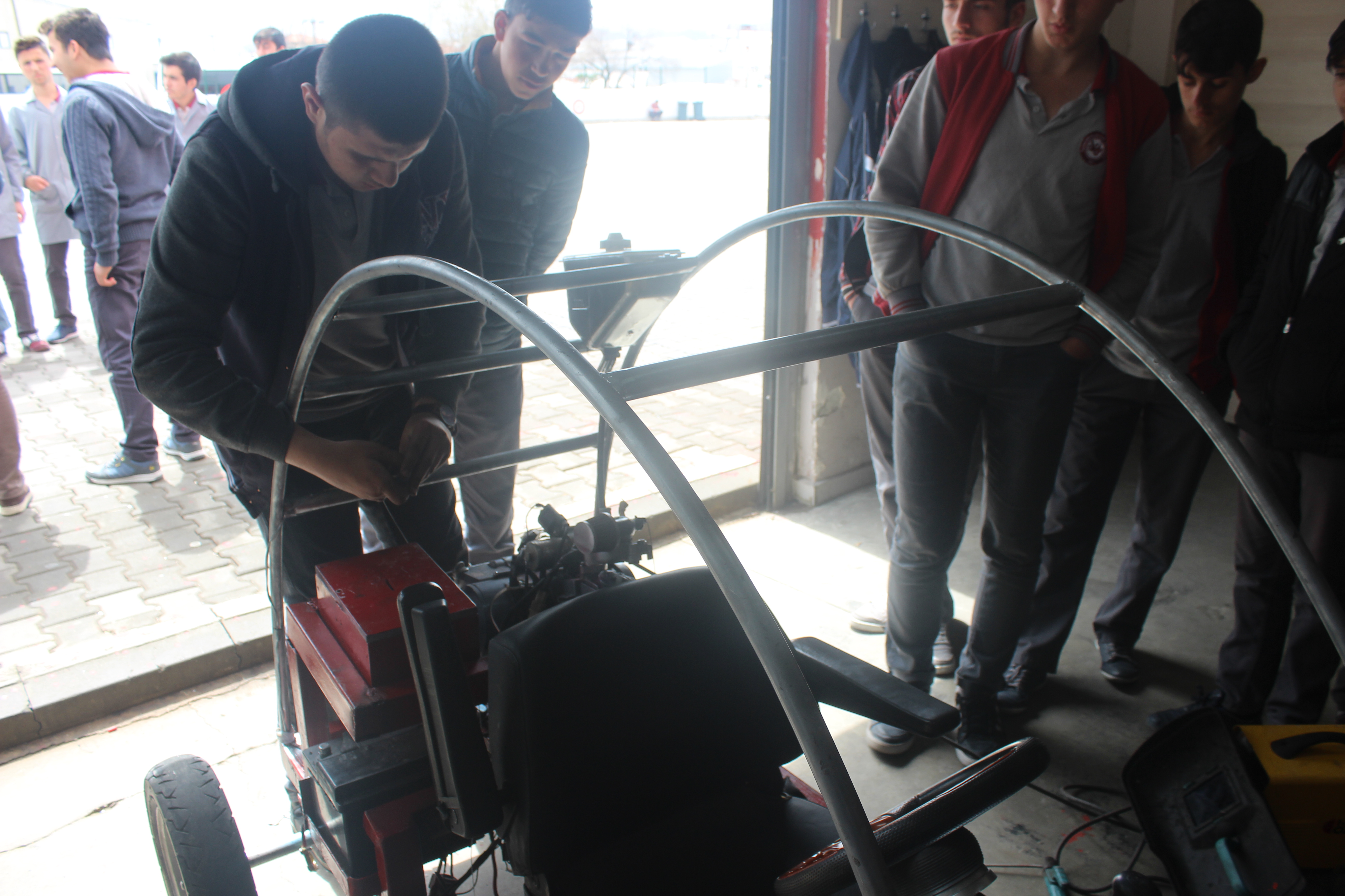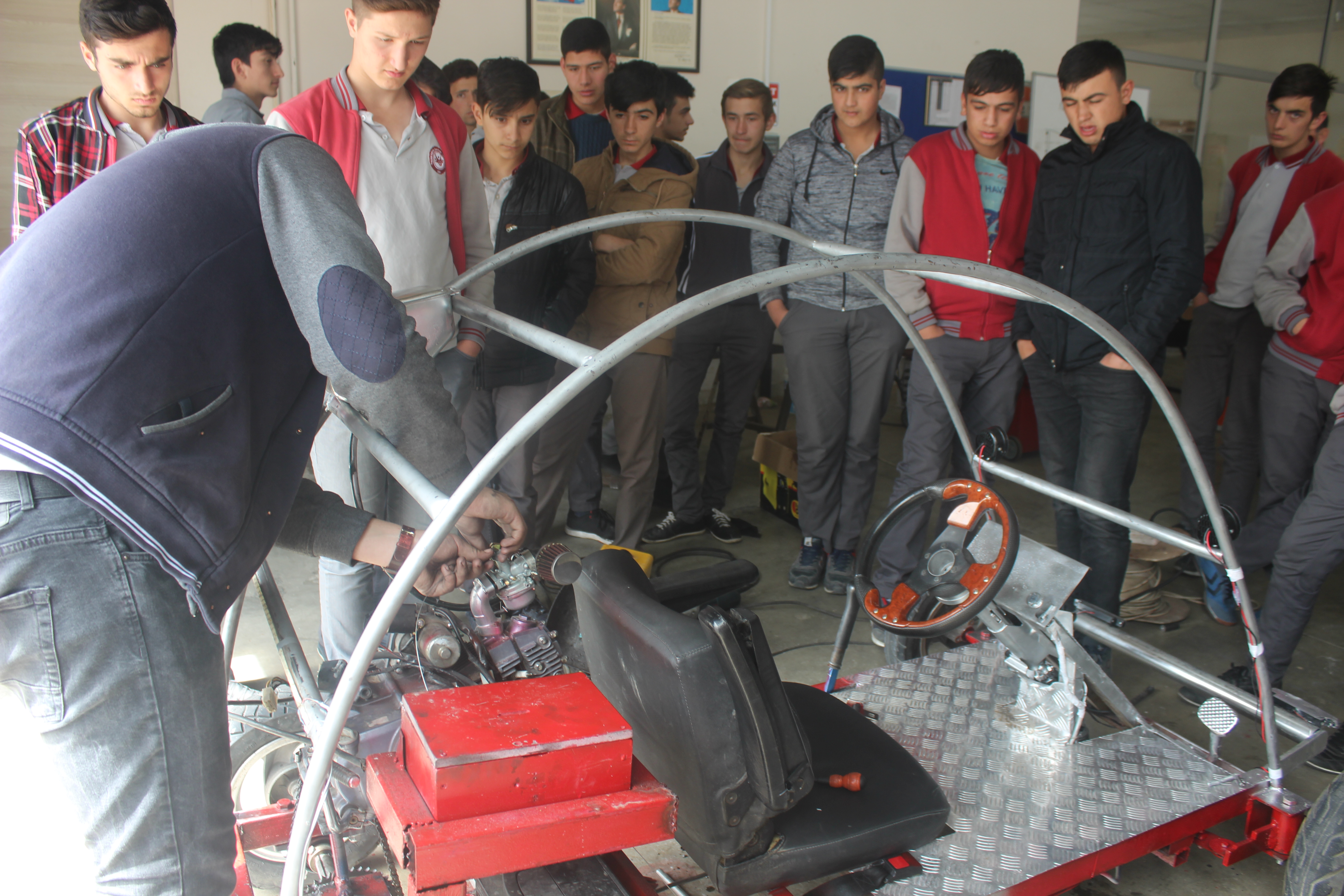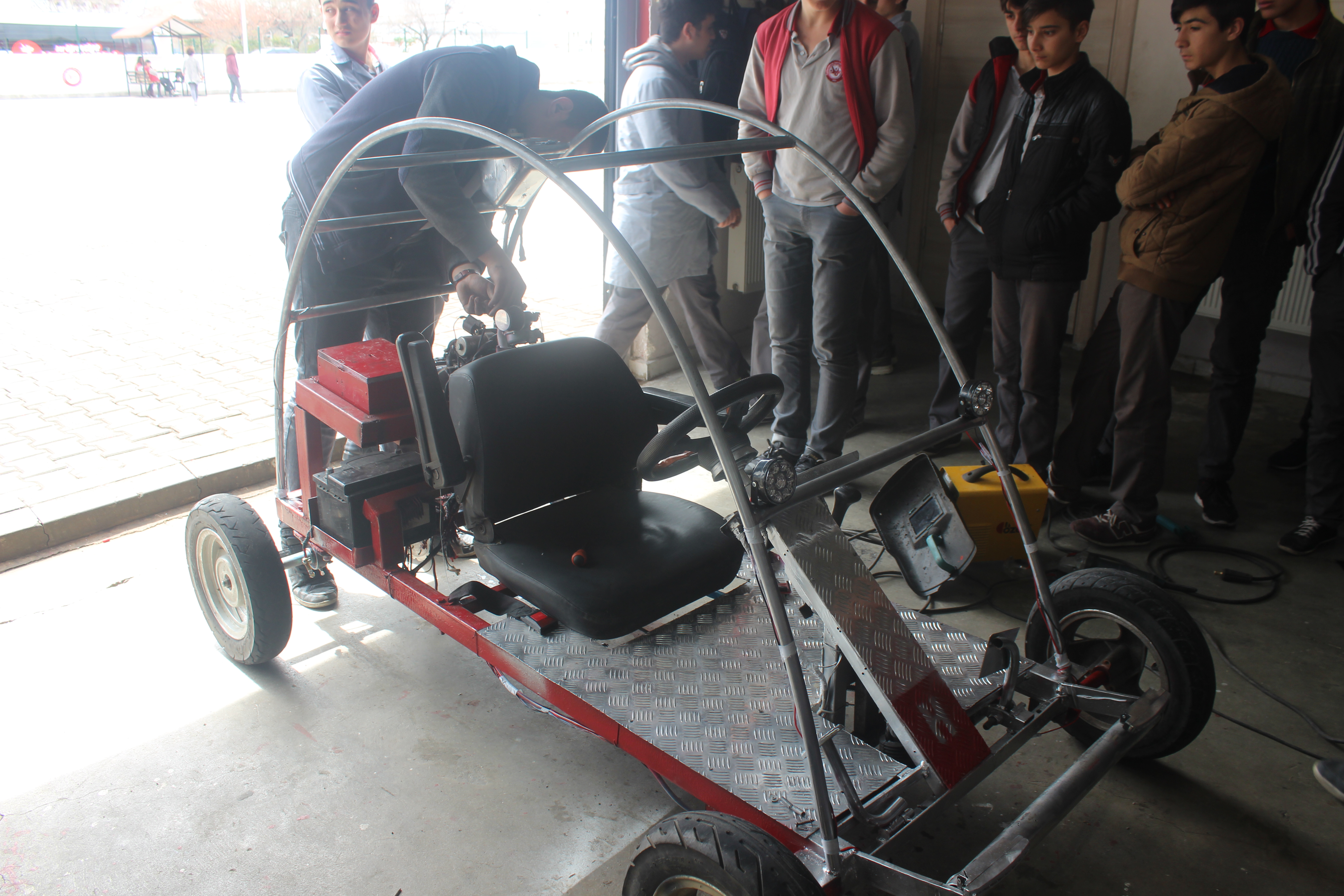 150 TL'ye ürettiği elektrikli araba ile ulusal basına ve TRT Habere konu olan öğrencimiz Mikail IŞIK'tan sonra öğrencimiz Hüseyin KARADENİZ'de yaptığı benzinli go - kort aracı ile beğeni topladı.